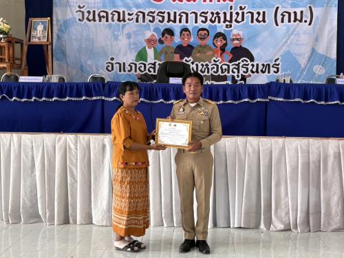 ?ว่าที่ร้อยโทสกุล แสนมั่น นายอำเภอสนม ประธานเปิดการประชุมฯ พร้อมด้วยหัวหน้าส่วนราชการ หัวหน้าหน่วยงานรัฐวิสาหกิจ กิ่งกาชาดอำเภอสนม กำนันทุกตำบล ผู้ใหญ่บ้าน ผู้ช่วยผู้ใหญ่บ้าน แพทย์ประจำตำบล สารวัตรกำนัน ทุกหมู่บ้าน ร่วมประชุมรับมอบนโยบายขับเคลื่อนการทำงานของรัฐบาล ครั้งที่ 3/2568 ประจำเดือน มีนาคม 2568 โดยนายอำเภอสนม ได้เป็นเกียรติมอบเกียรติบัตรให้แก่ผู้ที่ได้รับรางวัลในการประกวดผ้าไหมมัดหมี่ ลายดอกจาน และลายสร้างสรรค์ ในงานเทศกาล “สนมเมืองดอกจานประสานใจ ไหว้ปู่ตา”และงานกาชาด ประจำปี 2568